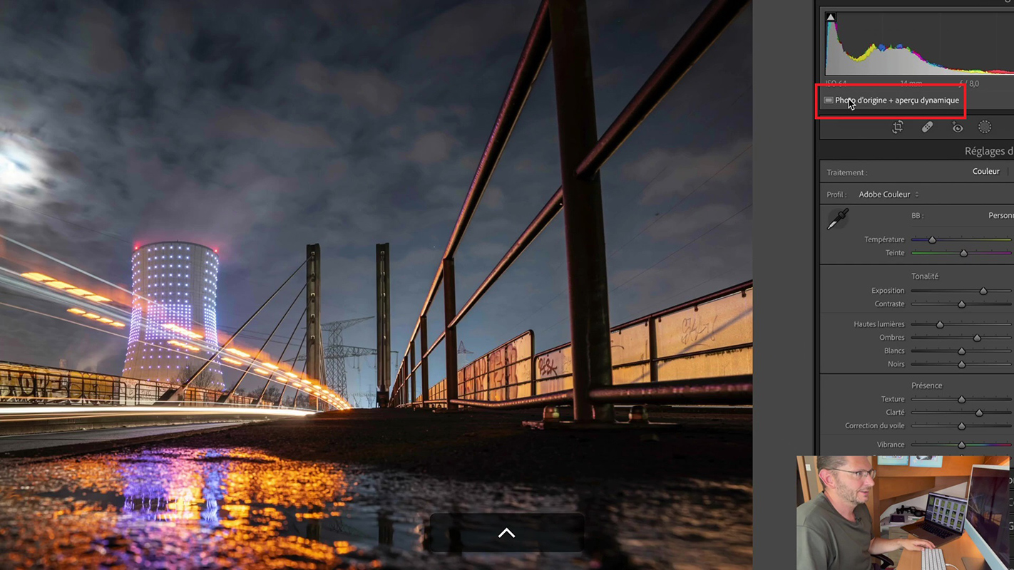 Le fait de travailler avec des aperçus dynamiques vous permet de travailler sur des versions allégées du fichier et lorsque vous vous reconnectez sur votre ordinateur principal, Lightroom effectue automatiquement le lien entre les réglages.