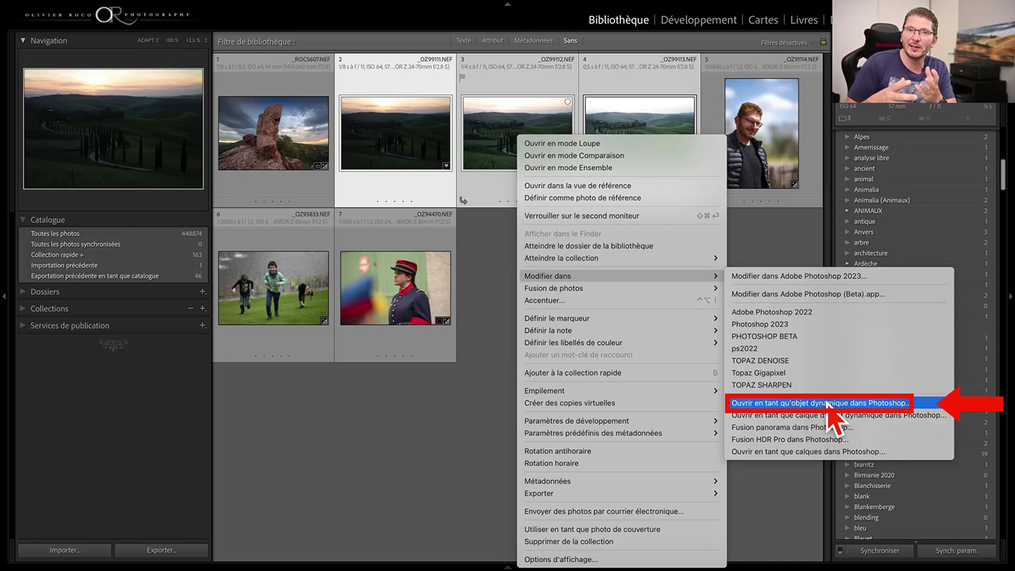 - Deuxième des nouveautés liée au flux de travail dans Lightroom 2023 : ouvrir en tant que calque d’objet dynamique dans Photoshop
