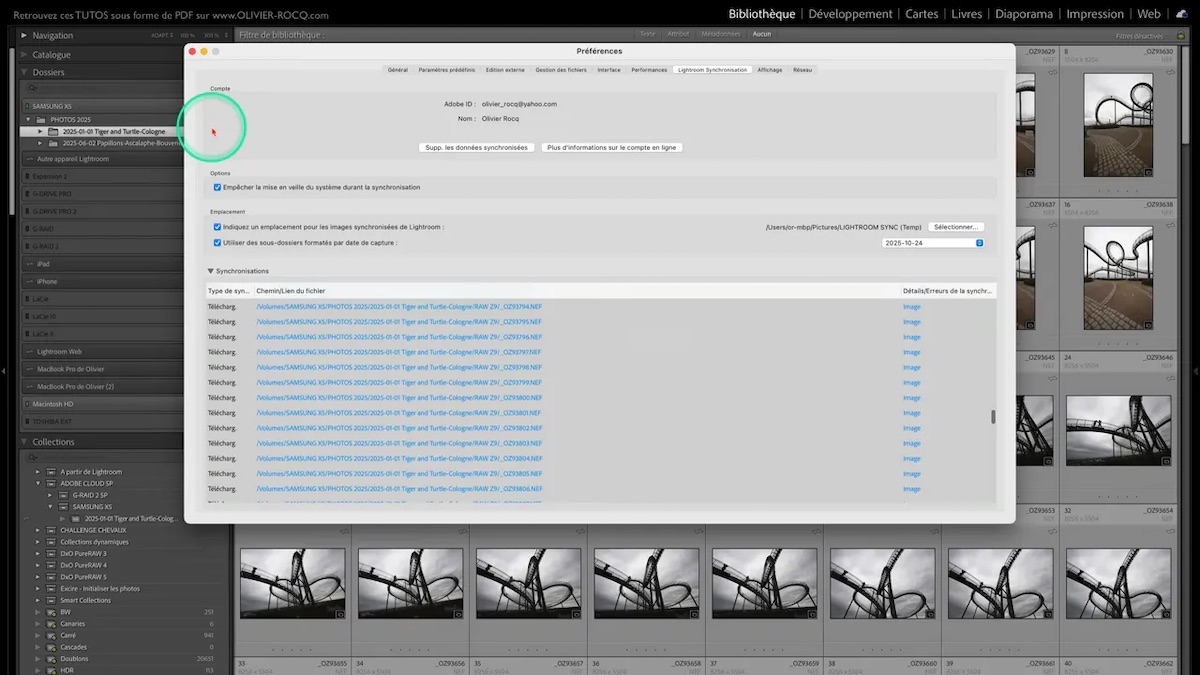 - Ajouter une collection par dossier physique et cocher « synchroniser avec Lightroom ».